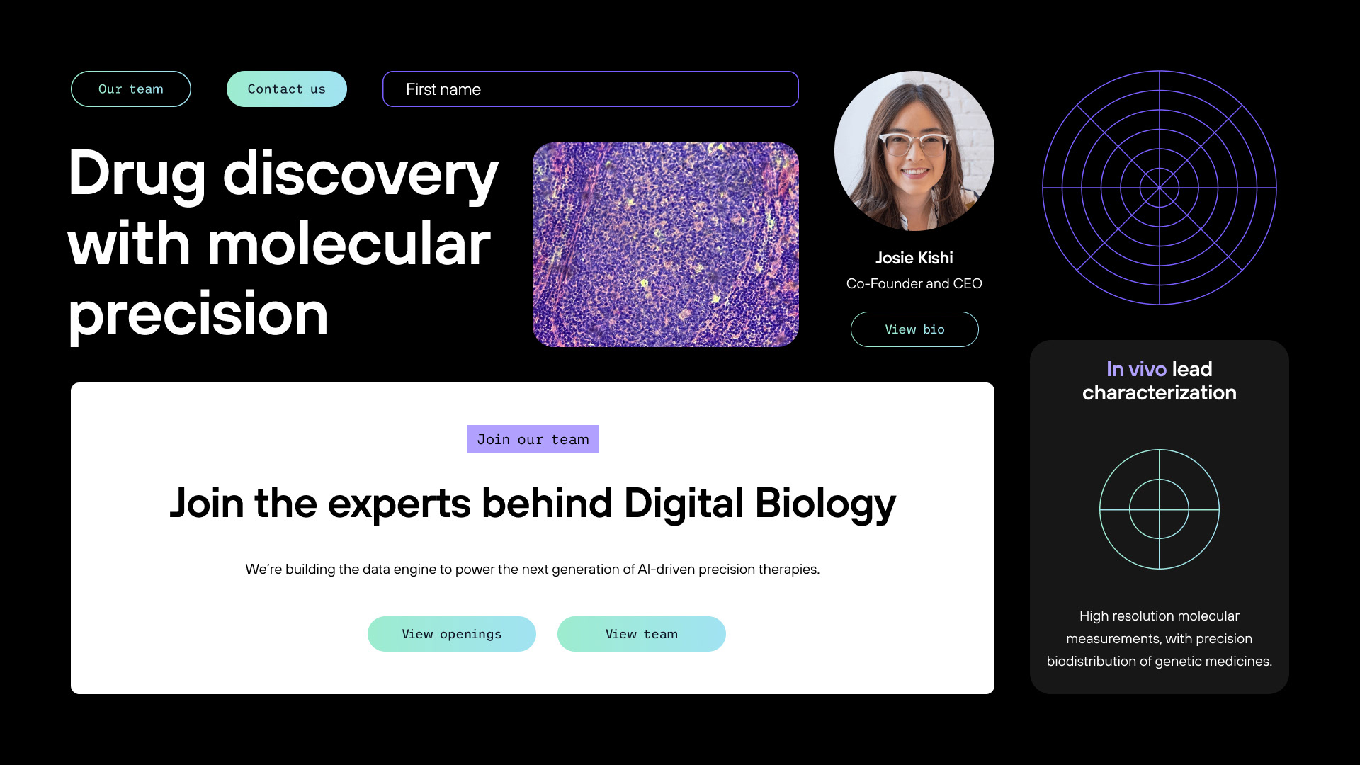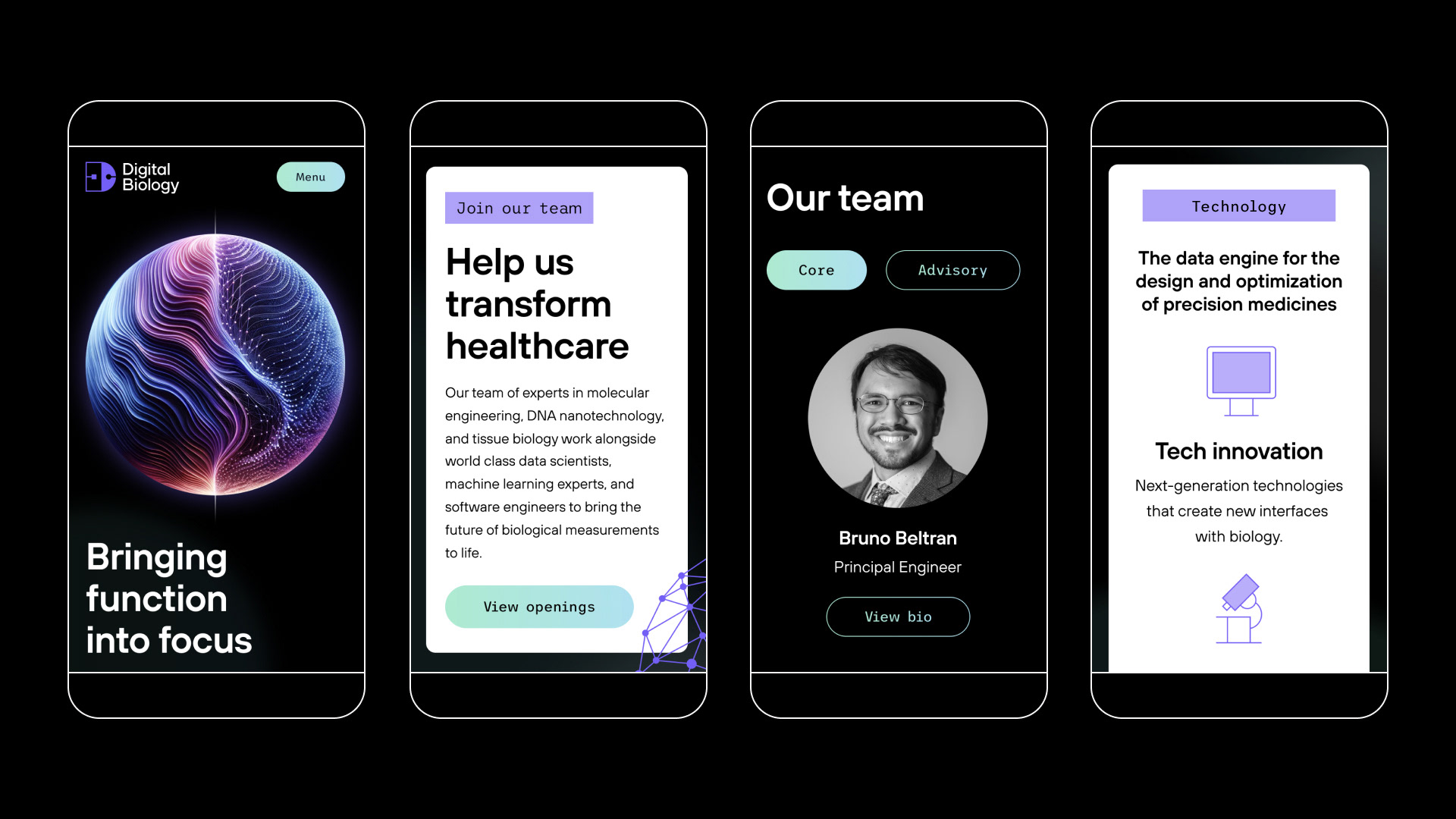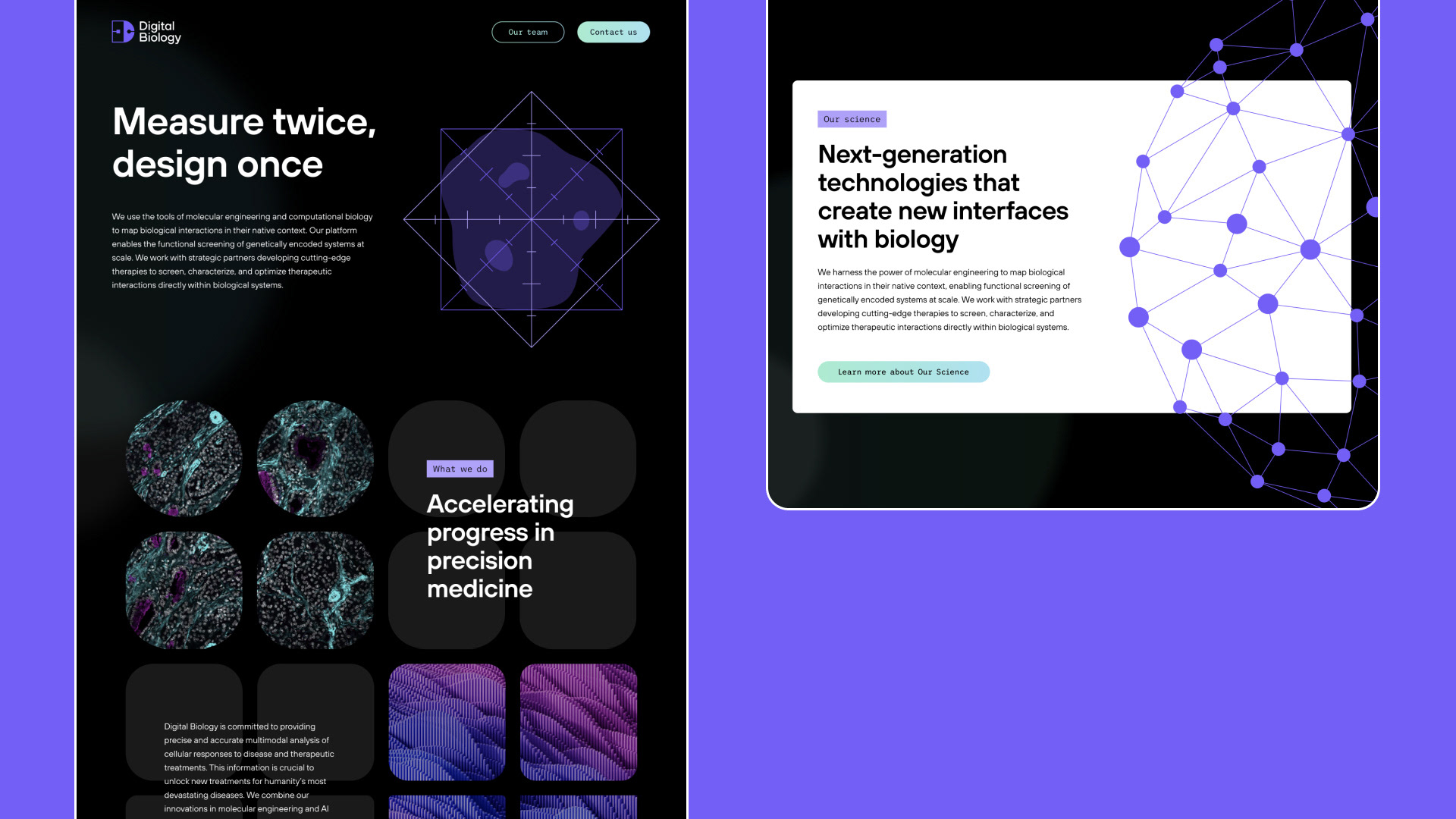 Digital Biology exists to help innovators in precision medicine measure, predict, and optimize the impact of medical advances on patient lives. The team at Digital Biology had worked hard to identify their unique position in the market but required a brand and website to live up to their ambition and impact. They approached Wunderdogs, where I work as senior designer, and challenged us to create a visual identity and website that would give them presence and awareness in the market.